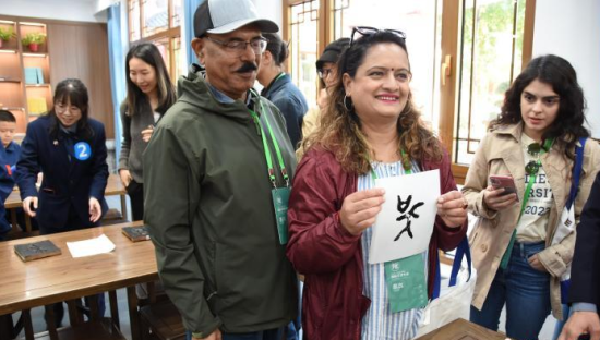 10月20日,參加2023中國(安陽)國際漢字大會的中外嘉賓走進河南省安陽市中小學,感受漢字魅力。10...