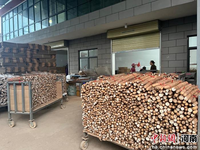 圖為倉庫里的山藥正在打包裝箱。李海珠 攝