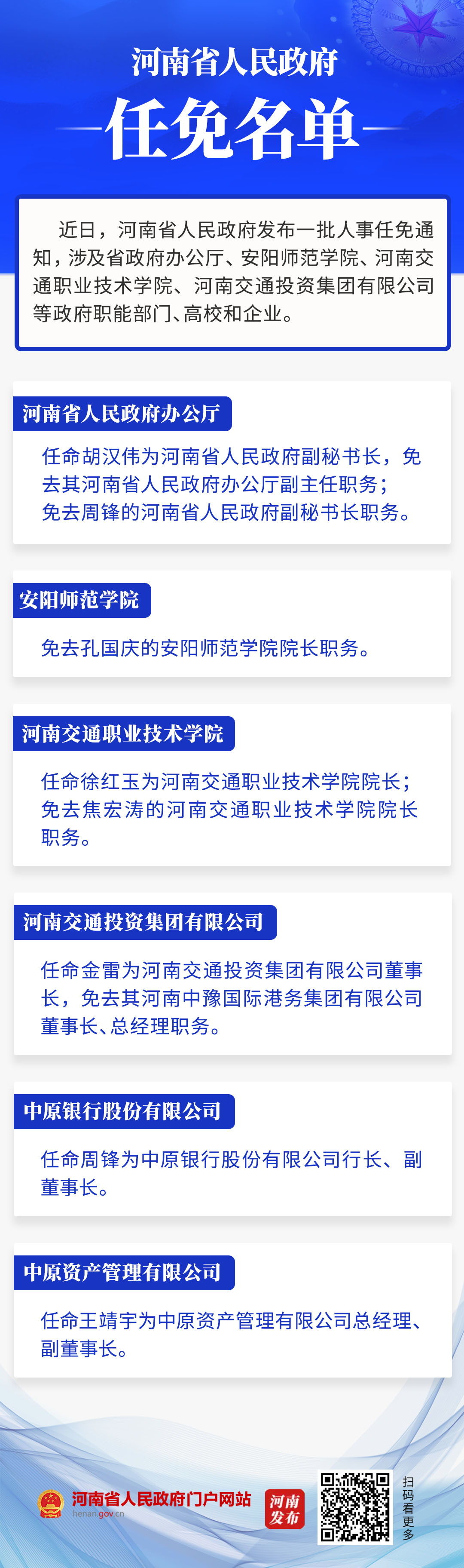 河南省政府新任免一批干部