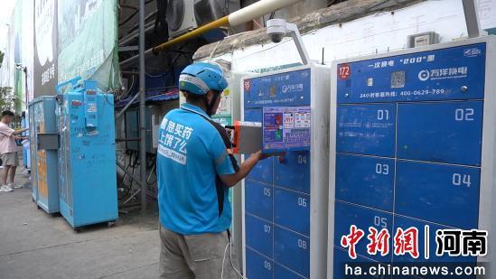 中新網(wǎng)河南新聞8月17日電 (李海珠)下午三點(diǎn)剛過(guò),位于河南省鄭州市金水區(qū)東風(fēng)路上的一處電池?fù)Q電柜迎來(lái)午后的換電“高峰期”。掃碼、開(kāi)柜、放入沒(méi)電的電池、取出滿電電池、關(guān)柜,多位外賣騎手熟練地從電動(dòng)車上取出電池,一系列動(dòng)作行云流水,不到三十秒的時(shí)間就完成了電池更換。