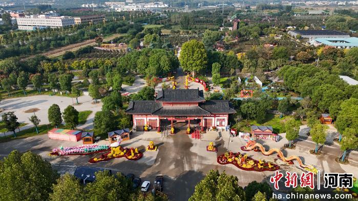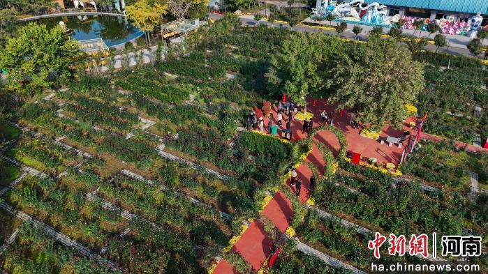圖為俯瞰南陽月季博覽園。(無人機照片)夏青華 攝