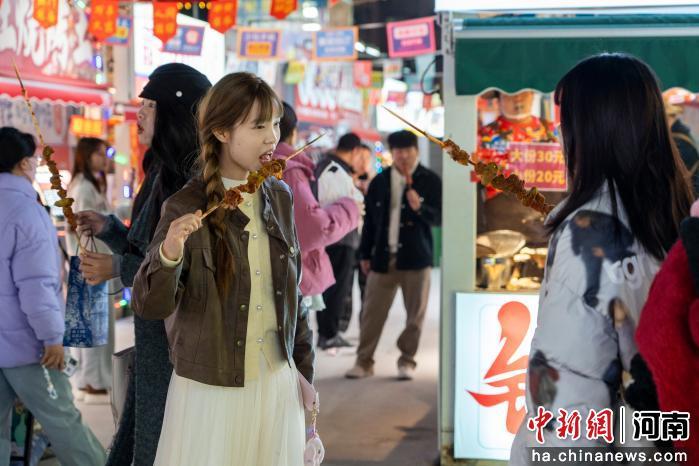 10月22日晚,河南南陽仲景市集煙火繚繞,來自東北的鍋包肉、新疆的烤串、云南的昆蟲宴等天南地北的特色小吃在此同臺競味,吸引眾多市民前來嘗鮮,品嘗跨越山河的南北風(fēng)味。