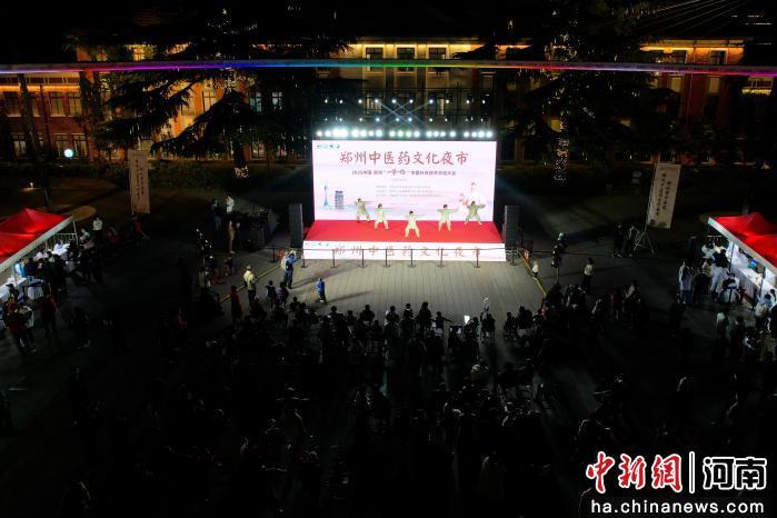 圖為鄭州中醫(yī)藥文化夜市活動(dòng)現(xiàn)場(chǎng)。(無人機(jī)照片)王士豪 攝