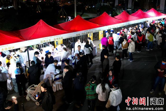 10月31日晚,河南鄭州二砂文創(chuàng)園廣場(chǎng)中醫(yī)藥文化夜市人氣十足,來自鄭州市中醫(yī)院醫(yī)護(hù)人員現(xiàn)場(chǎng)展示推拿、刮痧、耳貼等傳統(tǒng)中醫(yī)療法,免費(fèi)為民眾提供健康咨詢和診療服務(wù)。