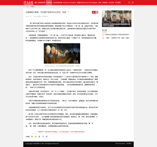 11月28日,《墨西哥華文時(shí)報(bào)網(wǎng)》采用中新社河南分社稿件,題目:從殷墟到三星堆,文化遺產(chǎn)研學(xué)何以讓歷史“說(shuō)話”?